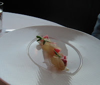 I should say that I’m a huge Thomas Keller fan. I think his approach to cooking is brilliant – the application of precise, albeit time-consuming, processes of food preparation result in impeccable results (ultra-refined sauces, intensely flavored garnishes, ridiculously tender meat, and gorgeous, artistic presentations). So, naturally, I expected the food to be among the best I have tasted. And it was very, very good. Steve has written extensively in his post on this blog about each course, so I will just mention a few favorites here (photos included above):